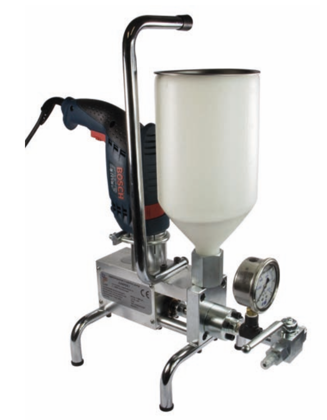 b & m Vertriebs-GmbH Electric high-pressure pump for one- and two-component materials. Quality pump at a reasonable price Complete, ready to use Suitable for smaller jobs with high-pressure injection of eg epoxy and polyurethane TECHNICAL DATA: MOTOR: 230 V 50 Hz, 600W Max pressure: 400 bar Max capacity (free flow) 1 l / min Hose length: 2m Weight approx. 4 kg Read the brochure here. Watch the video here. | ![]() |