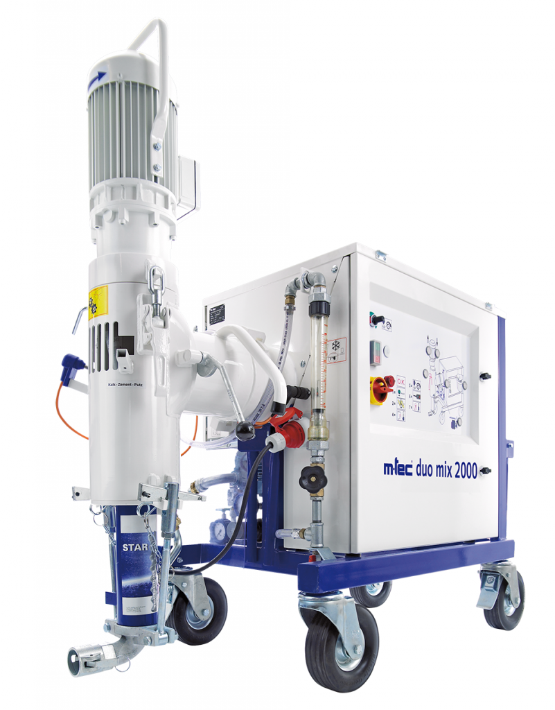 Mono-mix FU Smart and compact design. Can be used for all pumpable mortars (Dmax 3 mm). Powerful performance in relation to size. Easy to transport and clean. Stepless speed controller. Can be delivered with remote control TECHNICAL DATA: Capacity approx. 20 L / min Pump distance approx. 40 m (thin plaster) Pump height approx. 10 m (depending on material) Pump pressure approx. 20 bar Variable speed + 4 presets Motor 3 kW, 230 V, 3 phase, 50 Hz O / pr. min 280 Electrical connection 230 V 50 HZ 16 A Water connection ¾ ”GEKA Mine. water pressure 2.5 bar (during operation) Filling height sack item 1000 mm Weight approx. 140 kg Mono-mix FU can also be delivered with a compressor for spraying 1.1 kW, approx. 250 L / min, 4 bar. Watch the video here. | ![]() |