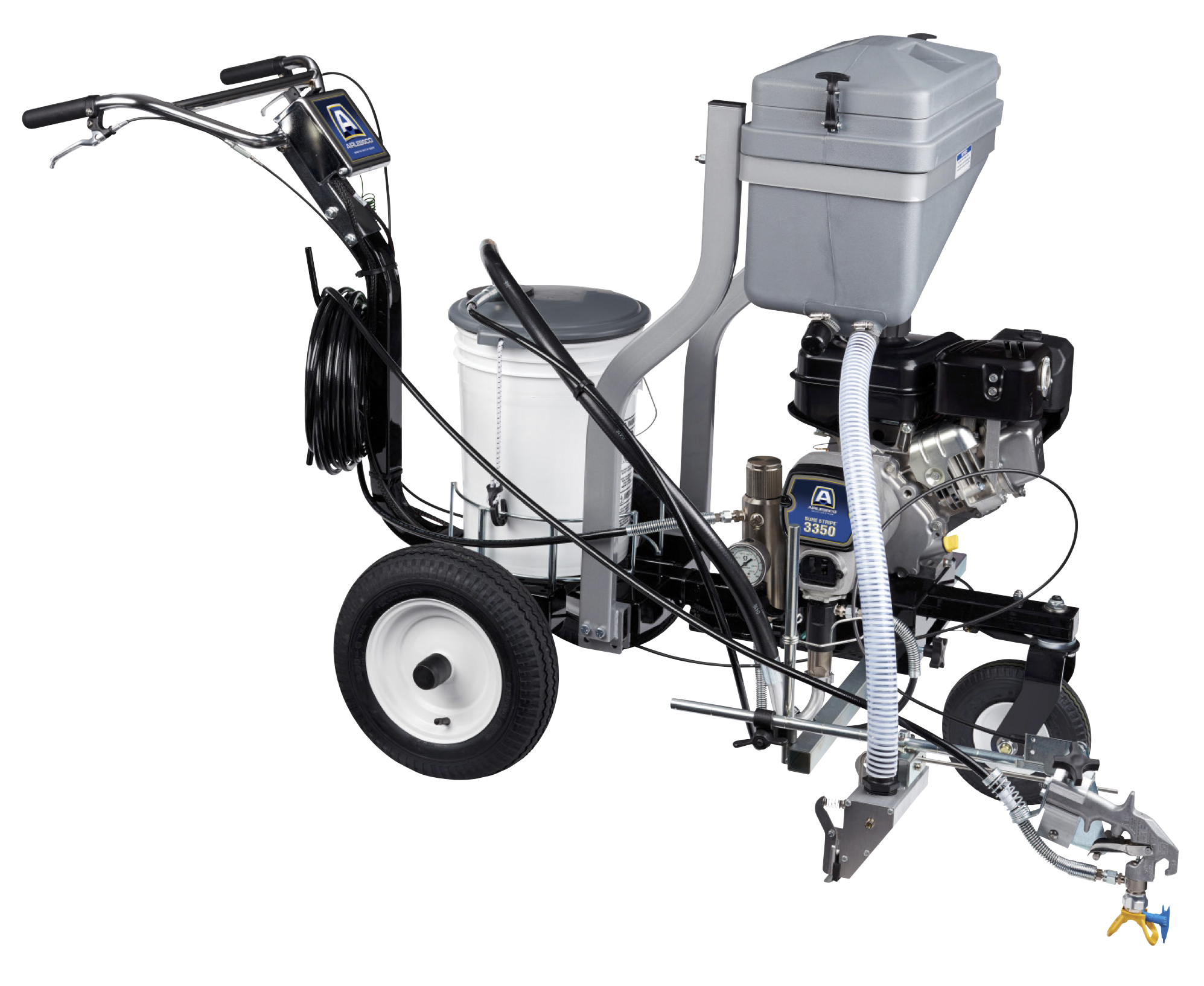 Sure Stripe Marking Machines The Sure Stripe marking machines are the ideal choice for any type of marking work. Whether it is used for lawns or asphalt, Sure Stripe is a reliable and accurate choice. In addition to the two standard models, there is also a self-propelled SP version. On the SP model, you can adjust speed manually or set a specific speed. Capacity (l / min): 2.8-4.7 l / min depending on model Max. performance height: 15 m Weight: 76-83 kg Engine: 5.5 PS Vangaurd Container volume: 55 l Included: Intake hose HD hose HD pistol Prolight 500 Tip protector Fine spray tip Watch video here Read datasheet here | ![]() |